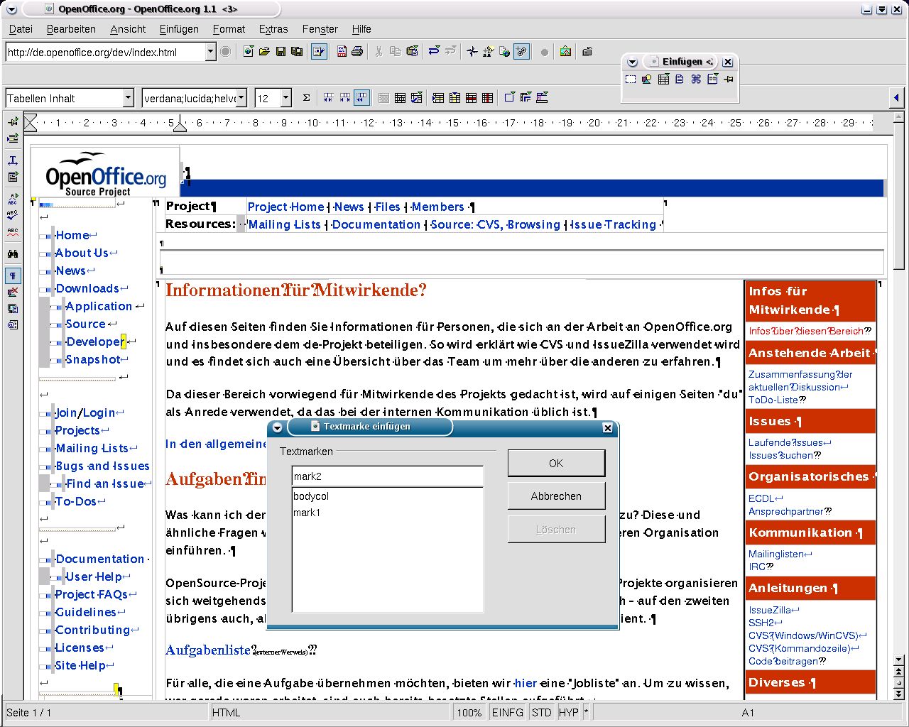 Screenshots - OpenOffice.org 1.1 - Html-Editor
